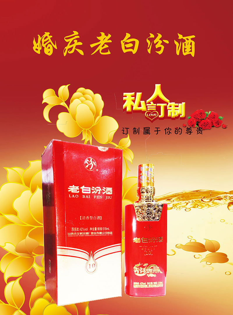 品名:婚慶老白汾酒10年